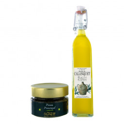 Entdeckung Beutel Olivenöl und Auberginenkaviar