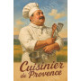 Mit Kochmütze, Holzlöffel und einem Lächeln auf den Lippen serviert dieser provenzalische Koch nicht nur Essen, sondern Herzlichkeit und Tradition.