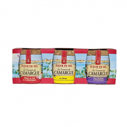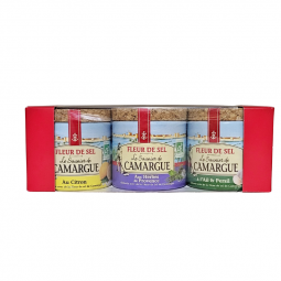 Nice box of 3 mini boxes of Camargue Fleur de sel with...
