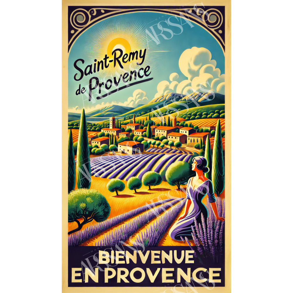 Immerse yourself in the gentle brightness of the South with “Saint-Rémy-de-Provence – Lights and Lavender”, a creation by Manufacture Arssans. This poster pays tribute to eternal Provence — the land of lavender fields, olive trees, and sun-drenched villages. In a composition that is both graphic and poetic, it captures the essence of Saint-Rémy-de-Provence, the jewel of the Alpilles and the beating heart of the region.