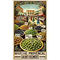 Au cœur de Saint-Rémy, les étals débordent d’olives vertes et...