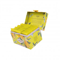 Verveine Bio 37%, Mélisse Bio 20%, Tilleul Bio 20%, Extrait de citron bio 10%, myrte citronnée Bio 7%, Souci fleurs Bio 3%, Ecorce de citron Bio 3%