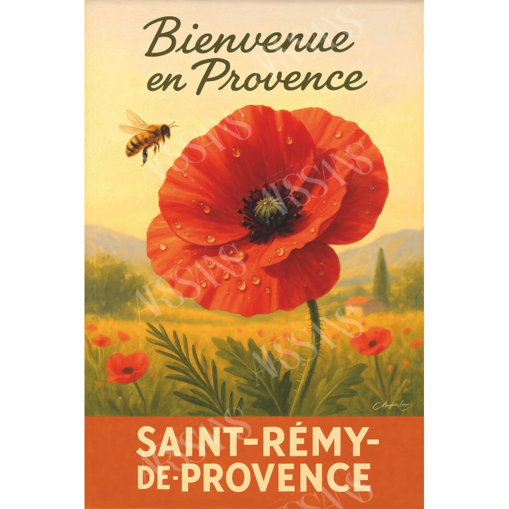 Sous la lumière dorée d’un matin de Provence, un coquelicot s’ouvre lentement, paré de rosée comme d’un bijou éphémère. À ses côtés, une abeille s’approche, suspendue dans un instant de grâce. Ce magnet illustré capture la poésie simple d’un paysage de Saint-Rémy-de-Provence, où la nature parle tout bas, avec ses couleurs franches et ses gestes délicats. Fleur de mémoire et de renouveau, le coquelicot incarne la beauté fugace du printemps, entre silence et éclat. Une ode à la terre provençale, éternellement vivante et inspirante.
