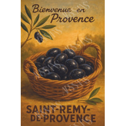 Gorgées de soleil et récoltées à parfaite maturité, ces olives noires incarnent l’âme généreuse de la Provence. Disposées dans un panier d’osier, elles évoquent les traditions ancestrales de la cueillette, le savoir-faire des moulins et les parfums puissants des oliveraies de Saint-Rémy-de-Provence.