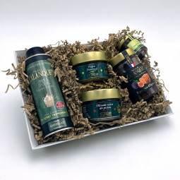 Composé d'un bidon d'huile d'olive assemblage 25cl, d'un pot...